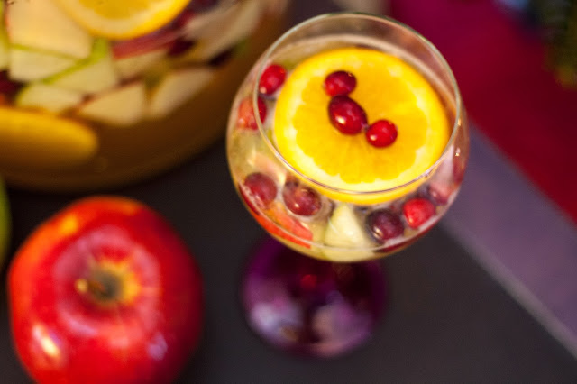 Core & slice apples. Slice oranges, leaving rind in tact. Place sliced fruit & oranges in your sangria container. Top with white wine. Allow to soak overnight. Add Sparkling Cider right before serving to keep fresh & bubbly. Stir to combine & ENJOY!
